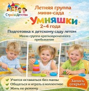 Летняя группа кратковременого пребывания «Умняшки» 2–4 года.